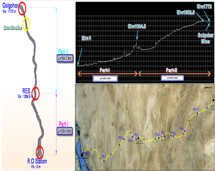 موضوع این قرارداد انجام مطالعات مرحله اول خط انتقال آب از تاسیسات نمکزدایی بندرعباس به معدن سنگ آهن گلگهر سیرجان به طول 290 کیلومتر و خطوط فولادی به اقطار 1600 میلیمتر و ده مرحله پمپاژ با هد کل 2400 متر می باشد.